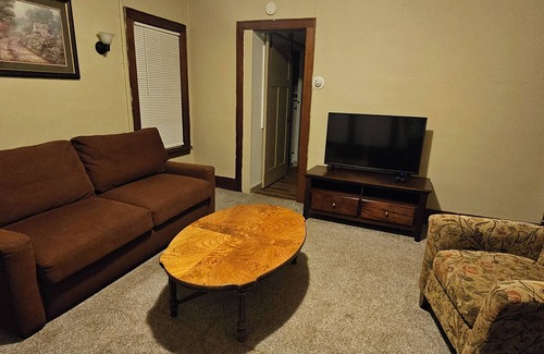 Sunny and bright one bedroom apartment near downtown Negaunee. Enjoy easy access to everything from this perfectly located home base. Less than one mile to US 41 and Teal Lake, close to trails - hiking, biking, skiing and only 15 minutes to Marquette! This is a perfect central location for exploring the UP. 1 private bedroom, 1 sleeper sofa, full kitchen with all the essentials.