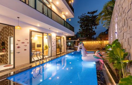Sunny Beach Villa is located in Danang, just a 8-minute walk from My Khe Beach and 2.4 miles from Song Han Bridge. This beachfront property offers access to a terrace and free Wifi. The villa offers an outdoor swimming pool and a shared kitchen. The villa features 6 bedrooms, a fully equipped kitchen with a minibar, a washing machine, and 6 bathrooms. A flat-screen TV is offered. The accommodation is non-smoking. Guests can also relax in the shared lounge area. Indochina Riverside Mall is 2.9 miles from Sunny Beach Villa, while Love Lock Bridge Da Nang is 2.9 miles from the property. Da Nang International Airport is 6.2 miles away.