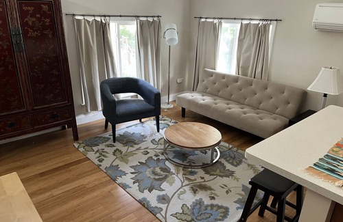 This bright, cozy coach house is your ideal base in Oak Park. It was originally the coachman's quarters behind a 1909 Prairie-style house, now converted into modern guest lodging.