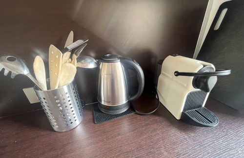 While you're here, you can enjoy all the comforts of home and more, including WiFi and a bidet, as well as air conditioning and an ironing board. Other amenities include laundry facilities, towels, soap, and toilet paper.