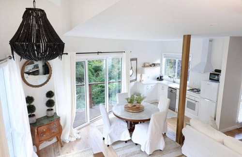 Romantic and brand new luxurious split level cottage with a north facing aspect overlooking a babbling creek and pristine bushland. Double glazed windows and doors ensure maximum temperature control in both winter and summer!