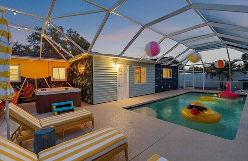 Sunny Escape-Murals-Spa-Grill-Fire Pit Fun-Beaches is located in South Bradenton. Sunny Escape-Murals-Spa-Grill-Fire Pit Fun-Beaches provides accommodation, featuring Child Friendly, TV, Guest Services, among other amenities. This House features Child Friendly, TV, Guest Services, to make your stay a comfortable one.