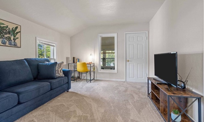 Keypad lock, private entry. Furnished rental client may park 2 vehicles in the covered parking off of the alley behind the house in the spaces designated with signs for unit 3-- there are several other rental units in the property with tenants, so parking arrangements must be strictly followed.