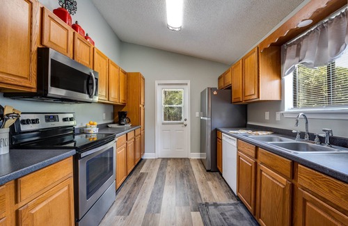 Peaceful neighborhood - a lot of trees that surround the house and you are close to town - shopping - restaurants - and all that Jacksonville & Orange Park have to offer! The Owner's Suite features a king size bed, 2nd guest bedroom has a queen bed and the 3rd bedroom has a full size daybed. Two bathrooms - one with a walk in shower, the other with a full tub/shower combo. Full Kitchen including dishwasher and basic pots & pans, utensils. We also have an "escape cave" - which is a bonus area with a queen sleeper sofa, washer/dryer and SMART ROKU TV - the perfect place for the kids to hang out! There are also SMART ROKU TV's in the main living area and Owner's Suite.