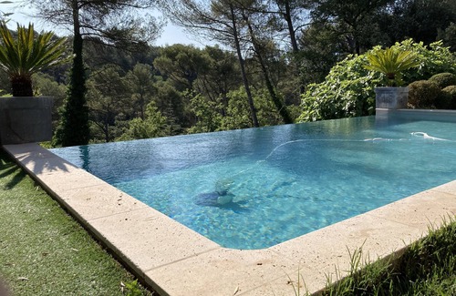 Eoures located at the foot hills of Marcel Pagnol and close to beaches and creeks of Cassis and La Ciotat, between Marseille and Aubagne, this house ensolleillée conditioned and not overlooked in the countryside, with its heated pool infinity 8x4 will seduce you with its tranquility.