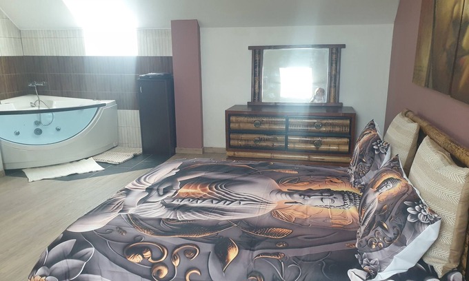 While you're here, you can enjoy all the comforts of home and more, including a jetted bathtub and WiFi, as well as heating and an ironing board. Other amenities include towels, soap, toilet paper, and a hair dryer.