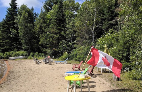 Over 100' sandy beach shared with only one cottage next door (see VRBO 9961122). Lake really is clear and clean, fantastic for swimming, canoeing and kayaking. Great place to swim, hike and sing songs around the fire! Canoe and kayak available for your enjoyment.