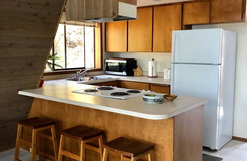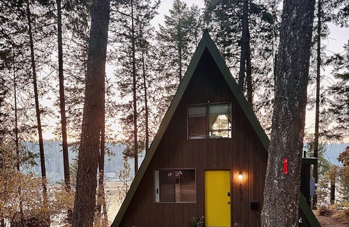 Enjoy all-day sun and your own dock at this mid-century A-Frame on exclusive Hayden Lake! Room to roam with a large flat lot surrounded by tall pine trees. You'll enjoy a panoramic lake view and sunset-facing views. The cabin has a large deck with a BBQ and dining area. There is a fire pit area for s’mores and stargazing at night. Situated on a highly desirable bay, the cabin has a large private dock to park your boat, take a swim or sit and watch the sunset. Sun and water conditions can be dramatically different around the lake, so you'll love staying here because it has the best of conditions: deep clean water (no seaweed or swamp), and all-day sunshine. The cabin is far enough from town to feel private and get away from it all, but close enough to access Coeur d'Alene if you want to spend a day shopping or go out for dinner. For those who like to cook at home, the cabin is fully equipped for a long relaxing stay on the lake. Main floor bedroom with queen bed. Upstairs loft bedroom with a queen size bed. Both room have new Tuft & Needle mattresses. The cabin sleeps four in total. Enjoy excellent Starlink WiFi, smart TV, as well as games and puzzles. For people who need to work remotely, the Starlink WiFi enables uninterrupted calls and meetings. Please note there are stairs down to the dock. We are dog lovers, so please tell us about your pet and observe the pet rules. Paved road all the way to the cabin, flat driveway direct to the door. Ample parking and room for a boat trailer. This cabin is conveniently located just a few minutes drive to Sportsman’s Access, one of the top rated recreation areas in the state for mountain biking. Silverwood Theme Park is approx 30 min away, and approx 45 min to Schweitzer Ski Resort. We hope you enjoy the simple pleasures and good vibes of an authentic lake cabin experience on gorgeous Hayden Lake.