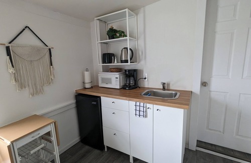 Welcome to our charming and sun-kissed one bedroom apartment in the heart of the city! You got everything you need for your stay in our kitchenette/living area while being entertained by a 55" smart tv.