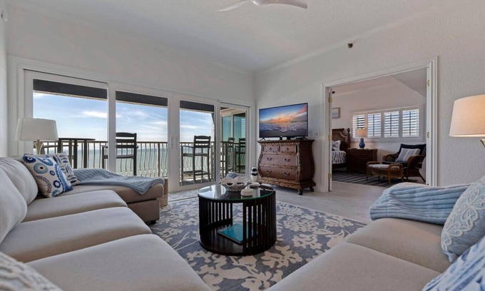 Experience beachfront bliss in this stunning 3BR/2BA Redington Beach condo! Newly remodeled with coastal décor and a fully updated kitchen featuring new stainless appliances, bar seating, and dining for six. Enjoy breathtaking Gulf views from your private balcony, a serene King suite, Queen suite, and twin room. Includes Wi-Fi, washer/dryer, parking, and full beach gear!