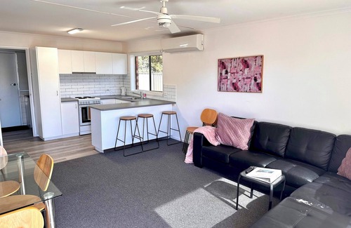 This quiet and peaceful 2 bedroom home is a favourite amongst travellers. With a continental breakfast included, family friendly amenities and secure pet facilities, make it a home away from home. It’s perfectly located close to the river and picturesque bushland with a walking/cycling track direct to the main street or it’s a 2 minute drive.