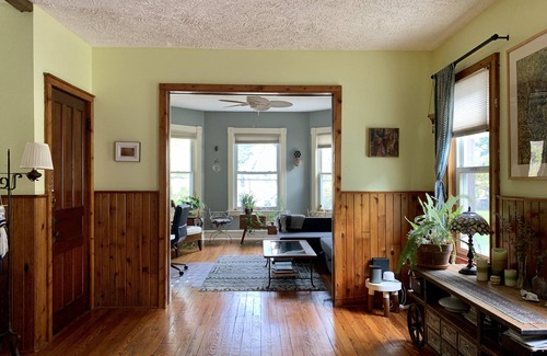 The sweet deck off the living room is a great place to read during the day or enjoy an outdoor meal. The house is a classic colonial from 1907 with original hardwood floors, exposed brick, high ceilings, and lots of built-in details. Original artwork and vintage furniture throughout. We used to live here ourselves and the whole house has been lovingly cared for and decorated. If you want a home away from home in a comfortable place with lots of character, you'll love it here. Please feel free to reach out if you have any questions!