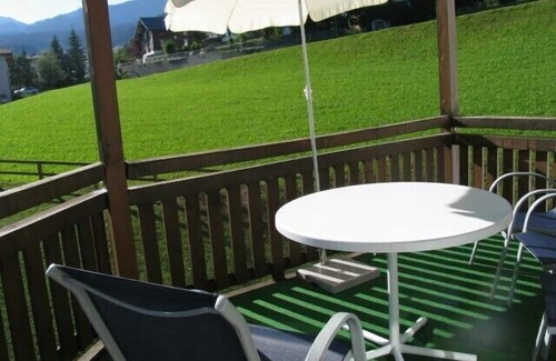 Family-friendly, spacious, sunny, non-smoking-4. 5-room apartment on the 3rd Floor of a very quiet detached apartment building with elevator. 3 double bedrooms, 6 single beds, 2 bathrooms, bath, shower. Large, bright living room with dining area on a higher level. Separate kitchen with dishwasher, ceramic hob and oven, new in 2012. Large, sunny balcony with a view of the mountains. Ski storage room on the ground floor. 1 garage space. Self-catering. Bed linen on request. More than 6 people only by arrangement. Internet connection available.