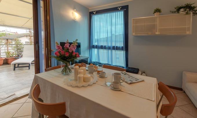 Sunny top apartment with terrace overlooking the Port Canal of Marina di Ravenna is located in Marina di Ravenna. Sunny top apartment with terrace overlooking the Port Canal of Marina di Ravenna provides accommodation, featuring TV, Balcony/Terrace, Wellness Facilities, among other amenities. This Apartment features TV, Balcony/Terrace, Wellness Facilities, to make your stay a comfortable one.