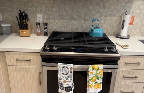 As you settle into this 2-bedroom, 1-bathroom rental, you'll find a living room, a BBQ grill, a fireplace, and air conditioning. Bathroom amenities include a hair dryer, towels, and toilet paper. The kitchen is equipped with an oven, a stovetop, and a refrigerator, as well as a coffee maker, an electric kettle, and a lobster pot. And because there's a washer and dryer, you can go a bit lighter on your packing.
