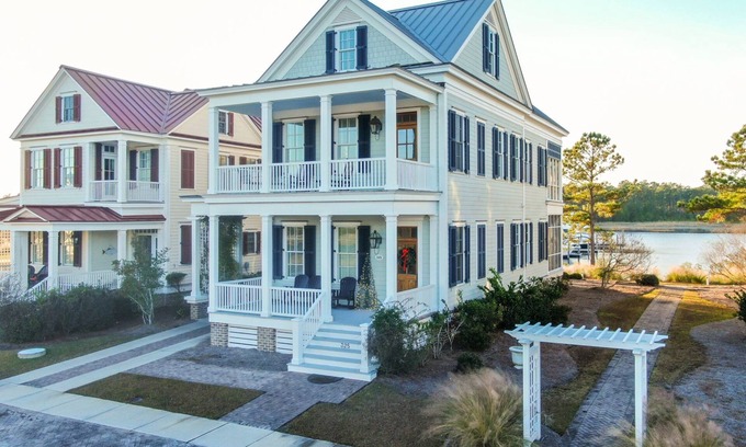 The Harborside Houses on the Row overlook charming Grace Harbor marina within River Dunes. River Dunes is an award-winning master planned community that embraces gathering spaces, spectacular water views and year-round boating.