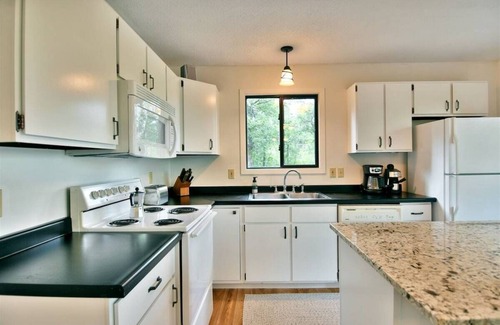 Start your mornings on the deck with a cup of coffee in hand, savoring the peaceful forest and lake views. Spend your day paddling across the sparkling waters in the provided kayaks or canoe, exploring the beauty of nature all around. As the sun sets, gather by the easy-to-access firepit to make s'mores and share stories under the stars.
