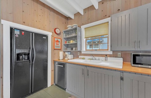 SunnySide is prominently nestled amongst the cottages of Bayside, overlooking the bay. Bayside is a cozy community with neighbors close by on all sides. Upon arrival you will see Sunnyside with a sweet public “library” in the front yard. After driving around the one way road, you will be able to park in the one parking spot in front of the garage doors. Please note, this space is tight and doesn’t accommodate oversized vehicles well.