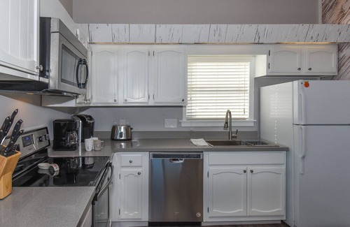 This townhome offers Roku TVs, and free Google WiFi, and all your linens are supplied. The shared washer/dryer is in the garage. The garage is not available for use, no elevator. Parking for one 1 vehicle per unit with additional parking near the tennis court. The pool and tennis court are on site adjacent to this great ocean-view townhome!