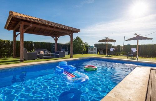 The rural house in Dolores, in the middle of nature, if you want to disconnect this is the right accommodation, if you like hiking you have a route to the Hondo swamp that you will enjoy long walks in, it has 3 bedrooms with capacity for 10 guests.Comfortable apartment of 100 m² and newly built, overlooking the private garden with pool and barbecue, garden furniture, fenced plot, 250 m² of terrace, barbecue, fireplace, iron, internet access (Wi-Fi), hairdryer, sauna, private pool, open-air parking in the same building, 1 fan, 1 TV, satellite TV (Languages: Spanish, English, German, Dutch, French, Russian, Swedish, Norwegian).The independent kitchen, with vitroceramic, is equipped with a fridge, microwave, oven, freezer, washing machine, dishwasher, dishes/cutlery, kitchen utensils, coffee maker, deep fryer, toaster, kettle, and juicer.It is located 2 km from "Dolores" city, 2 km from "Consum Dolores" supermarket, 2 km from "Dolores" bus station, 12 km from "Albatera" train station, 12 km from a sandy beach, 15 km from the golf course, 30 km from the airport "Alicante" and is located in an ideal zone for families and rural areas.To facilitate your arrival, you shall receive, a few days before your arrival, a request to make an online security deposit. This security deposit won’t be debited nor impacted on your bank account. This procedure is authorized by your booking platform.