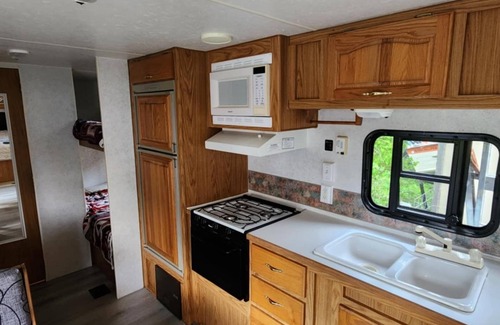 "Sunrise Beach" Travel Trailer on 435' of Lake Michigan frontage- Fish on! is located in Garden. "Sunrise Beach" Travel Trailer on 435' of Lake Michigan frontage- Fish on! provides accommodation, featuring View, Security/Safety, Bedding/Linens, among other amenities. This House features View, Security/Safety, Bedding/Linens, to make your stay a comfortable one.