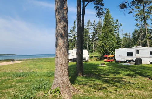 Travel Trailer "Sunrise Beach" sits on 435’ of Lake Michigan shoreline next to the boat launch at Fairport Fishery. This waterfront location is located in the scenic fishing village of Fairport, Michigan, roughly 5 miles South of Fayette State Park. The travel trailer is located on a vacant lakefront lot (between our home and Fairport Fishery (including boat launch and fish processing facility). It is THE prime launch spot for King Salmon fishing. Fairport is the outdoor enthusiasts' paradise! There are two travel trailers (both available as rentals) located on this very spacious lakefront location. Plenty of room to park trucks and trailers. Kayak use included! Lake Michigan is great for swimming, fishing, and boating during Summer. Our Fall colors are spectacular!
