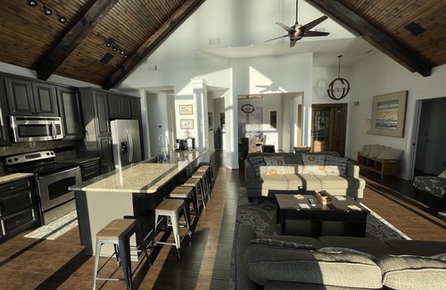 This beautiful, light-filled lake house is amazingly decorated with top-of-the-line construction and high-end furnishings and appliances. It’s perfect for those with large families or those just wanting a little extra space, elegance, and comfort.