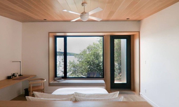 Each cabin suite is approximately 450 square feet and equipped with one organic queen bed, a walk-in shower, and a deep soaker tub. Interiors are modern and light-filled, featuring a private deck and window seat to quiet your mind and immerse you in nature. Cabins do not include a kitchenette - instead, enjoy chef-prepared meals serviced daily as part of your full-board retreat.