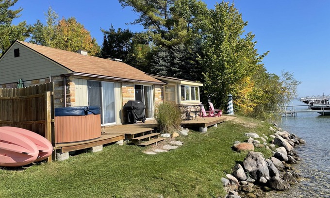 THE SPACE: Enjoy the peace and tranquility of Mullett Lake at this cozy 2-bedroom, 1-bath Mullett Lake cottage, offering Stunning & breathtaking views of the lake and all the necessities for a lake lover's retreat with Air Conditioning in those hot summer months. Nestled minutes or seconds! from golf, biking, and hiking trails, adventure is a short drive away. Discover downtown Topinabee or neighboring Indian River, just minutes from your door. Come home to your cozy home away from home for a family BBQ on the deck or, if it's a clear night, some jaw-dropping stargazing or Northern Lights from the fire pit beach side or hot tub!