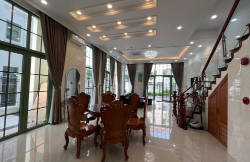 1.3 miles from Khem Beach in Phú Quốc, Sunrise Villa bãi Khem - biệt thự 4 phòng ngủ, 5 phòng tắm, thang máy riêng, máy giặt và sấy đồ, bếp với đầy đủ dụng cụ ăn uống, đồ dùng nấu ăn offers accommodations with access to wellness packages and spa center. This beachfront property offers access to a balcony and free Wifi. The villa features parking on-site, an outdoor swimming pool, and an elevator. Featuring a terrace and garden views, the spacious villa includes 4 bedrooms, a living room, satellite flat-screen TV, an equipped kitchen, and 5 bathrooms with a shower. A private entrance leads guests into the villa, where they can enjoy some fruit. The villa offers bed linen, towels, and laundry service. Guests are welcome to eat at the on-site family-friendly restaurant, which is open for dinner and lunch. Dining options are available close to the villa. Yoga classes and fitness classes are arranged at the fitness room in house. For guests with children, Sunrise Villa bãi Khem - biệt thự 4 phòng ngủ, 5 phòng tắm, thang máy riêng, máy giặt và sấy đồ, bếp với đầy đủ dụng cụ ăn uống, đồ dùng nấu ăn provides indoor and outdoor play areas. A private beach area is available on-site and cycling can be enjoyed close to the accommodation. Sung Hung Pagoda is 15 miles from Sunrise Villa bãi Khem - biệt thự 4 phòng ngủ, 5 phòng tắm, thang máy riêng, máy giặt và sấy đồ, bếp với đầy đủ dụng cụ ăn uống, đồ dùng nấu ăn, while Corona Casino is 29 miles from the property. Phu Quoc International Airport is 11 miles away.