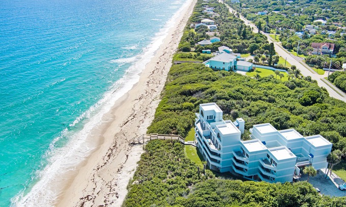Amazing oceanfront views from 3 floors of living space! The building has an elevator if needed. Steps away from an amazing beach to enjoy the sun, surf and sand! Wake up to your own private balconies and check out the sounds of the waves as you sip a cup of coffee or just relax and enjoy the ocean breeze! Watch the dolphins frolick and the pelicans soar by & don’t miss out on sea turtle sightings in season!! Just steps away from enjoy the beach for sunrises and sunsets! Check out the shuttle launches they an be seen right from the balconies or beach!!