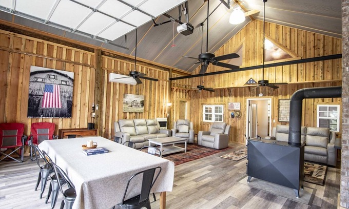 Welcome to Sunset Acres! This freshly renovated Barndominium is the perfect spot for outdoor enthusiasts and equine lovers alike. Enjoy a large communal living area with plenty of seating for the entire family. Behind the garage door are large windows that will let in all the light and none of the outside elements.