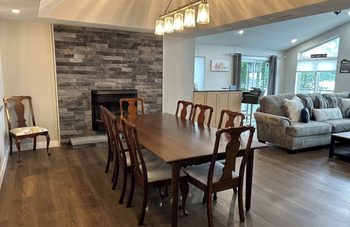 Welcome to our gem on the lake. This Stylish and unique vacation home is the perfect vacation spot for you and yours. Spacious rooms and living space are great for gathering with friends and family. Enjoy boating or other favorite water activities right from our private dock and unwind in the evening while taking in the breath-taking picturesque sun set in the evening! Gather around the firepit and enjoy your company!