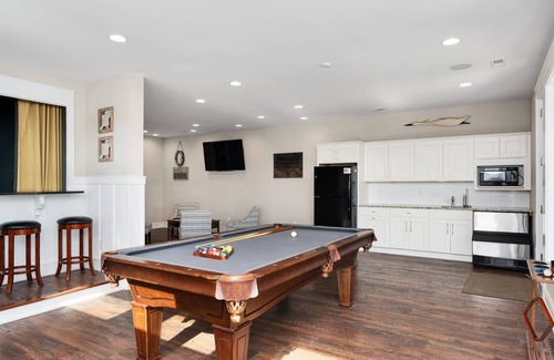 The Sunset Beach House boasts a private heated pool, soothing hot tub, and a rec room with a pool table to keep you entertained. You can host your rehearsal dinner or post-wedding brunch in the spacious great room, complete with a well-equipped kitchen for preparing delightful meals. Each of the eight en-suite bedrooms ensures that your guests enjoy their own private retreat. Plus, the convenient elevator makes moving luggage and groceries effortless, allowing you to focus on creating beautiful memories.