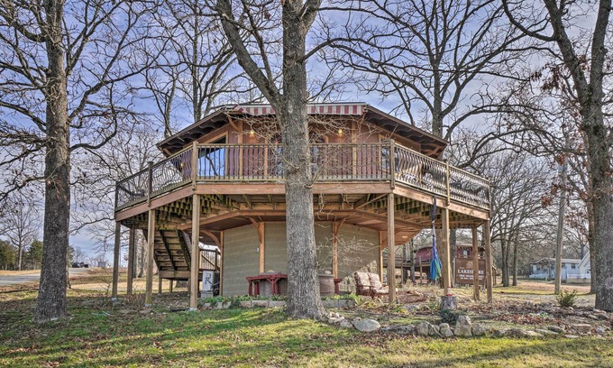 Looking for a unique getaway filled with swimming, boating, fishing, and good old-fashioned R&R? Then this waterfront Diamond City vacation rental, better known as 'Sunset Bluff Treehouse,' is the perfect spot for you! As the closest home to Sugarloaf Marina and Lead Hill Park & Campground, this 1-bedroom, 1-bathroom treehouse gives you direct access to the lake. The home includes a well-equipped kitchen, a wraparound deck, a Smart TV, lake gear, and a gas grill for al fresco dining! Book now.