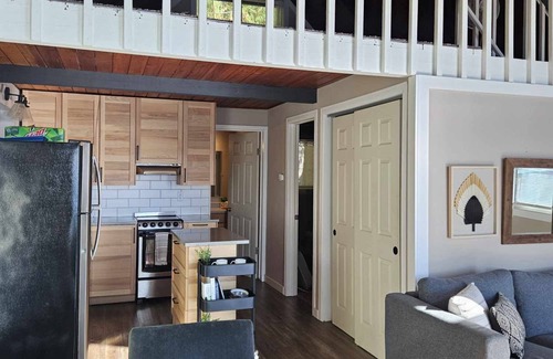 Sunset Cabin is a lakefront one bedroom chalet with an open loft and rustic-meets-modern finishes. It has one bedroom, 3 queen beds, remodeled kitchen, bathroom with shower and a gas fireplace. The pebble beach is just off the deck where you can enjoy the view, take the canoe out for a paddle around the lake and take in the gorgeous sunsets! Please note that guests are required to complete the rental agreement attached, along with the 2 ID items listed on page 3 of the agreement within 24 hours of booking.