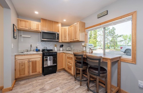 Enjoy peaceful views of McKinney Lake right from the kitchen window and wake up to a serene pine forest view in the bedroom. Step outside to relax around the firepit in your private outdoor space—perfect for unwinding after a day of exploring.