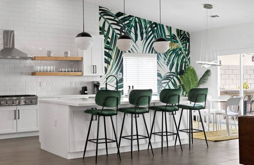 Sunset Escape has spent almost a year being renovated from top to bottom! Walls, floors, ceilings and cabinets torn down and built back up to create an open space design perfect for vacation rentals. The common space is designed to be an open kitchen concept making it ideal for large groups to hang out. The kitchen boasts an expansive island with all new stainless steel appliances. Large sliding glass doors lead out to the resort-style pool and the newly built pergola to provide shelter from the sun. The three bedrooms are spacious and can accommodate up to 10 guests with 5 total beds. The master bedroom has a sliding glass door leading out to the yard, as well as one other bedroom with a private door.