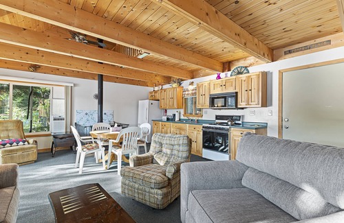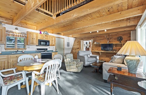 Savor your favorite beverages and snacks on the large deck while enjoying gorgeous sunsets. Enjoy a movie on the living room flatscreen TV or retire with a good book to the upstairs bedroom or loft accessible via spiral staircase or the downstairs bedroom. Sleeping spaces combine to offer a full-sized bob-o-pedic foam mattress and 4 twin beds (2 Sleepy's foam mattresses and 2 regular).