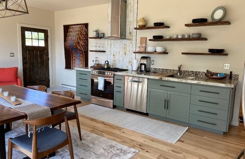 Escape to the comfort of this newly renovated modern barn house nestled in the middle of cherry trees, clear blue lake water and majestic mountains.