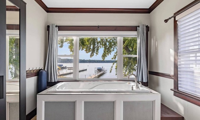 - One bedroom includes a jacuzzi tub overlooking the lake.