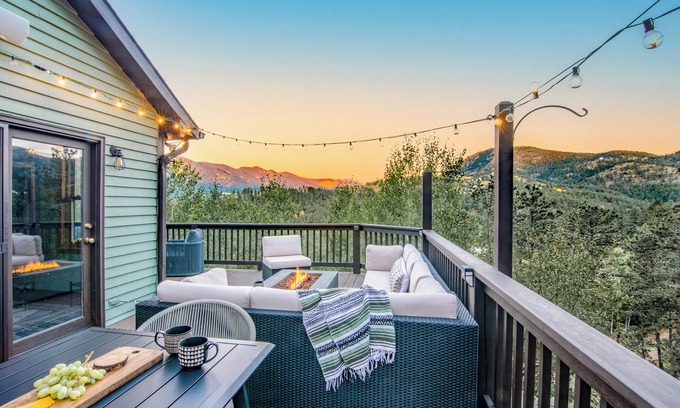 Breathe in fresh air around a warm fire pit while soaking in sweeping mountain views on the private 3 acre property, very often hosting wildlife! Whether you are looking to unplug, experience a quaint mountain town (5 min drive!), catch a show at the world famous Red Rocks Amphitheater, ski at popular resorts, take a day trip to Rocky Mountain National Park, or experience the many outdoor mountain sports, this professionally designed mountain home is ready to meet your vacation dreams!