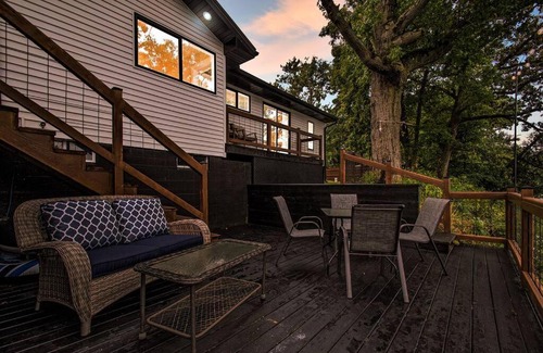 Sunset Point-Riverfront, SwimSpa,Kayaks,30 Min ND offers accommodations in Elkhart, 17 miles from Bethel College and 21 miles from Swiss Valley Ski and Snowboard Area. With free private parking, the property is 23 miles from Notre Dame Stadium and 5.5 miles from Midwest Museum of American Art. Eck Baseball Stadium is 23 miles away and Compton Family Ice Arena is 23 miles from the villa. With free Wifi, this 4-bedroom villa features a cable flat-screen TV, a washing machine, and a fully equipped kitchen with a dishwasher and oven. Towels and bed linen are available in the villa. The accommodation has a fireplace. Guests can relax in the garden at the property. University of Notre Dame is 23 miles from the villa, while Warren Golf Course is 22 miles from the property. South Bend Regional Airport is 29 miles away.