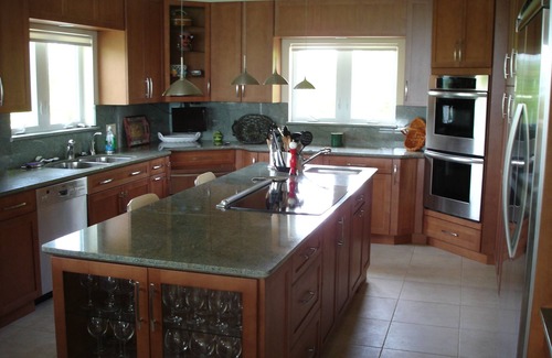 Our 4 bedroom, 4 ½ bath home is three stories with a roof top sundeck. The elevator can take you, your luggage and groceries to all indoor living levels of Sunset Reef. You will climb the spiral staircase from either the middle level or the upper level to the roof sundeck for views of not only the islands in Everglades National Park on the bayside, but of the Atlantic Ocean and the historic lighthouse on Alligator Reef. Walk the property through our shade garden, ring one of the peace bells, sit on a teak bench and relax amid the native and tropical landscaping. The spacious ground level covered patio facing the bay is perfect for entertaining and dining. The complete “outdoor kitchen” includes a large gas grill, burners and rotisserie.