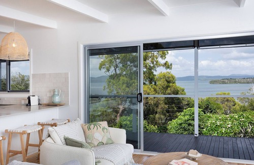 Instantly feel relaxed the moment you enter Sunset Shores. With breathtaking views over Wallis Lake and the Barrington Tops mountains, serenity and holiday vibes will greet you immediately.