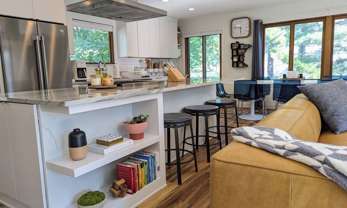 “Sunset Shores” nestled along the Mississippi River, in a serene neighborhood, just 15 minutes from downtown Minneapolis & St. Paul. Our recently updated home offers the perfect blend of modern luxury and cozy comfort. From the moment you step inside, you'll be greeted by sleek design and thoughtful touches that ensure an unforgettable stay. You'll love our amenities, some of which are 4 trail bikes with a backpack cooler for enjoying a picnic lunch and a soaker tub to relax after a great ride.