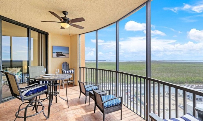 Welcome to Sunset Siesta, your ultimate vacation retreat in Cape Harbour, Florida. This stunning two-bedroom, two-bathroom condo is located on the 13th floor, offering breathtaking views of Sanibel Island and the Gulf, perfect for enjoying a tranquil sunset or a peaceful morning.
