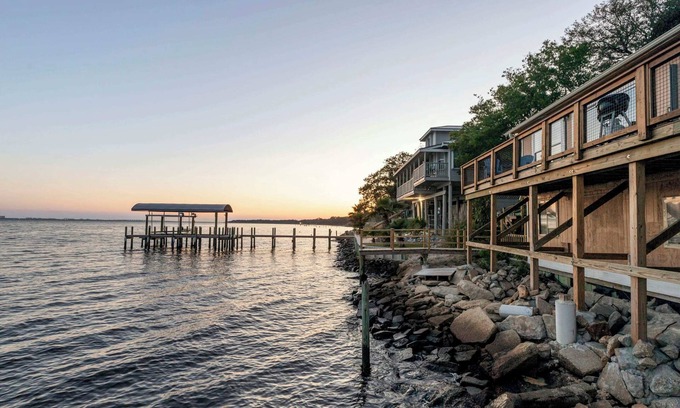 Imagine staying in a cozy, modern property nestled right on the water's edge. This unique rental boasts panoramic views of the tranquil waterfront, where you can watch the sunrise from your balcony or enjoy the sunset while watching the shimmery waves and dolphins play. Inside, the accommodation features stylish furnishings, comfortable amenities, and all the comforts of home creating a perfect retreat for memorable waterfront getaway.