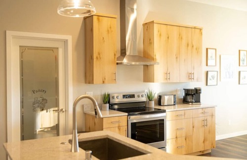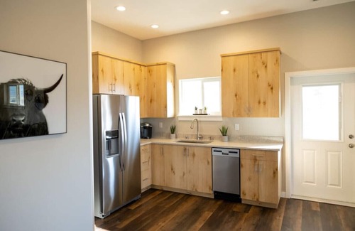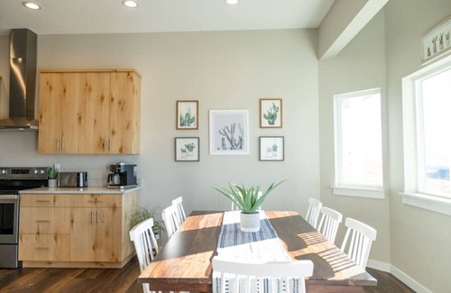This beautiful ranch home features 2,500 square feet of elegantly laid-out space, including two connected wings complete with living rooms, kitchens, and bedrooms. You and your wedding party can take advantage of modern amenities such as fully stocked kitchens, cozy electric fireplaces, and luxurious bathrooms equipped with essentials. Host intimate pre-ceremony moments on the expansive outdoor patio, where an eight-person hot tub awaits, alongside an inviting fire pit area—ideal for gathering with friends and family under the stars. The game garage provides fun activities like ping pong and foosball to entertain your loved ones during downtime, while comfortable accommodations ensure every guest has a restful night after celebrating your special day.