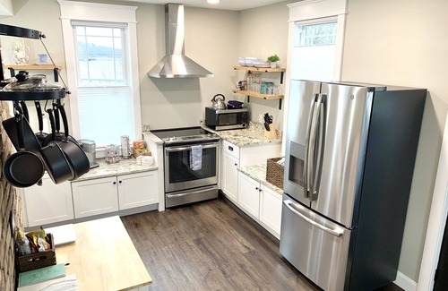 - Comprehensive Amenities: This property comes equipped with a fully stocked kitchen, two-person hot tub, Wi-Fi, and smart TV, ensuring a comfortable and convenient stay for you and your guests.